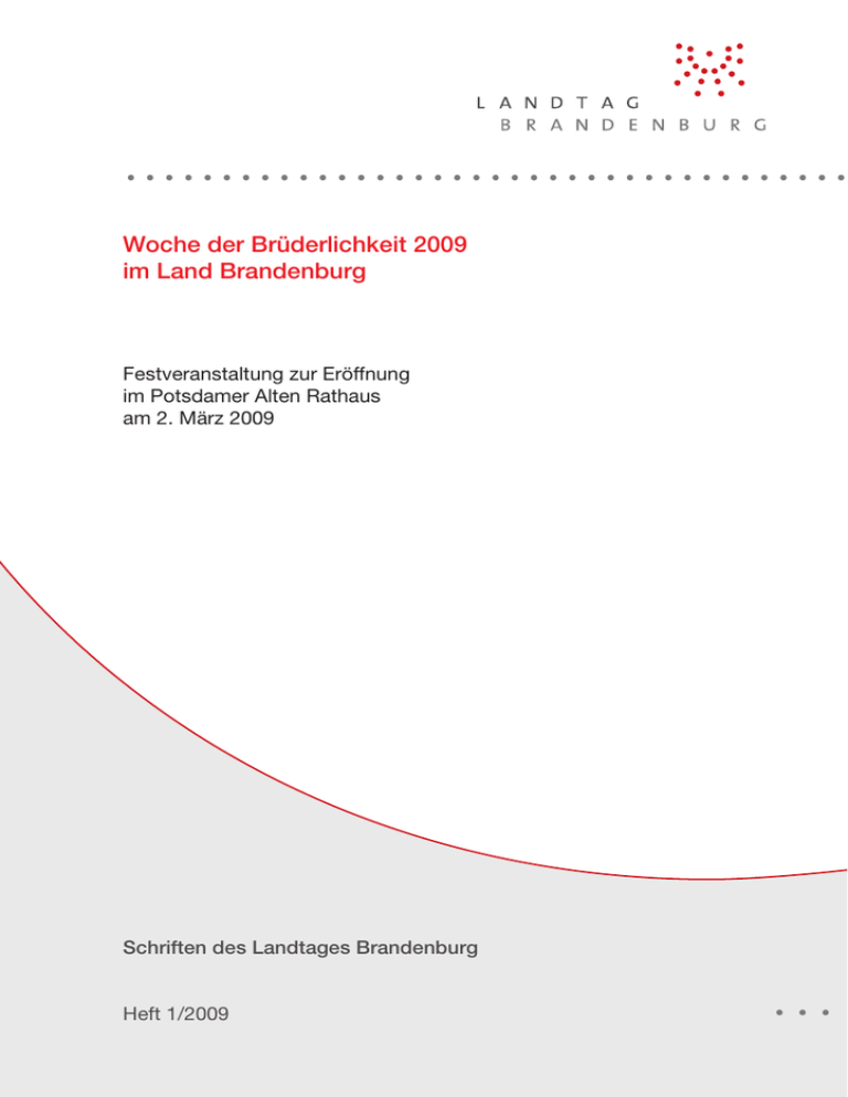 Woche der Brüderlichkeit 2009 im Land Brandenburg Festveranstaltung zur Eröffnung im Potsdamer Alten Rathaus am 2. März 2009 Schriften des Landtages Brandenburg Heft 1/2009 Woche der Brüderlichkeit 2009 im Land Brandenburg Festveranstaltung zur Eröffnung im Potsdamer Alten Rathaus am 2. März 2009 Inhalt Grußworte: Gunter Fritsch Präsident des Landtages Brandenburg Dr. Hans-Jürgen Schulze-Eggert Evangelischer Vorsitzender der Gesellschaft für Christlich-Jüdische Zusammenarbeit in Potsdam Vladimir Genkin Vorsitzender der Jüdischen Gemeinde Potsdam Festansprache: Prof. Dr. Julius Schoeps Direktor des Moses Mendelssohn Zentrums Potsdam Mitwirkende: Chor International Potsdam unter Leitung von Wolfgang Puwalla Musikalische Einführung „Dos Kelbl“, „Tumbalalaika“ Musikalischer Ausklang „Hashivenu“, „Jerusalem“ Musikalisches Zwischenspiel „Salmo“, „Psalm in Jazz“ Gunter Fritsch Präsident des Landtages Brandenburg Sehr geehrte Damen und Herren Abgeordnete des Landtages und der Stadtverordnetenversammlung, sehr geehrte Mitglieder der Landesregierung, sehr geehrter Herr Innenminister Schönbohm, sehr geehrter Herr Postier, sehr geehrter Herr Prof. Dr. Schoeps, meine sehr geehrten Damen und Herren, ich heiße Sie alle zur Eröffnung der Woche der Brüderlichkeit im Land Brandenburg herzlich willkommen. Wir feiern nun schon das zehnte Mal die Woche der Brüderlichkeit, zu der ich auch die Vertreterinnen und Vertreter der Religionsgemeinschaften, darunter den Vorsitzenden der Jüdischen Gemeinde Potsdam, Herrn Genkin, und in diesem Jahr auch die Vorsitzende der Jüdischen Gemeinde Berlin, Frau Süsskind, begrüßen darf. Seien Sie uns recht herzlich willkommen. Ich freue mich, dass sich die Eröffnungsveranstaltung eines ungebrochenen Interesses offenbar sicher sein kann. Die Fülle des Saales zeugt davon. Das ist nicht zuletzt auch das Verdienst der Potsdamer Gesellschaft für Christlich-Jüdische Zusammenarbeit, die - auch in Person ihres evangelischen Vorsitzenden, Herrn Dr. Schulze-Eggert - die Woche der Brüderlichkeit mit ihrem Engagement über die Jahre hinweg trägt. Es zeugt aber auch von den verlässlichen und guten Beziehungen der christlichen-jüdischen Gemeinden in unserem Land, die sich unter anderem durch diese Veranstaltung entwickelt haben. Umso mehr bitte ich um Ihr Verständnis, nicht jeden Einzelnen hier begrüßen zu können. Ein ganz besonderer Dank geht an den Chor International, der uns durch die heutige Veranstaltung begleiten wird. Der Chor setzt sich aus Mitgliedern mit unterschiedlichstem kulturellen Hintergrund zusammen, die ihr traditionelles Liedgut mit eingebracht haben. Er ist dafür im vergangenen Jahr mit dem Potsdamer Integrationspreis ausgezeichnet worden. Zu Recht, wie ich meine. Meine sehr geehrten Damen und Herren, am gestrigen Sonntag hat Bundespräsident Horst Köhler auf der zentralen Veranstaltung im Hamburger Schauspielhaus den bundesweiten Auftakt zur Woche der Brüderlichkeit gegeben. Sie steht in diesem Jahr unter dem Leitmotiv: „1949 – 2009 So viel Aufbruch war nie“. Ich meine: Das Motto ist gut gewählt, fallen in dieses Jahr 2009 doch allein mit der Gründung der Bundesrepublik und der ersten friedlichen Revolution in unserem Land im Herbst 1989 zwei markante Aufbrüche, die uns Grund zur Freude geben. Sie lassen sich aber in ihrer Tragweite nicht ohne die ebenfalls anstehenden Jahrestage, die vor 1949 lagen, verstehen. Die Erfahrungen der Französischen Revolution im Jahre 1789 und die Gründung der ersten deutschen Demokratie vor genau 90 Jahren beweisen, dass hoffnungsvolle Aufbrüche auch scheitern können, dass um Erfolge und ihren dauerhaften Bestand ständig gerungen werden muss. Nirgendwo ist diese Erkenntnis bitterer als in Deutschland. Mit dem Scheitern der ersten deutschen Demokratie scheiterte auch die Humanität in unserem Land, und niemand musste das bitterer erfahren als die Deutschen jüdischen Glaubens. Im Herbst 1939 waren es dann deutsche Generäle, deutsche Einsatzgruppen und deutsche Amtsträger, die die systematische Verfolgung und Ermordung von Jüdinnen und Juden nach ganz Europa getragen haben. Erst die Katastrophe der Shoa lässt begreifen, wie schwierig der Aufbruch für einen christlich-jüdischen Dialog im Jahr 1949 tatsächlich gewesen sein muss. Für die Deutschen christlichen Glaubens verband sich damit oftmals das Eingeständnis auch eigener Schuld. Von den Überlebenden - sei es im Land der Täter oder im Staat Israel - verlangte es Großmut und Zutrauen in die moralische Integrität des Menschen. Der so unmittelbar nach Kriegsende begonnene Aufbruch im christlich-jüdischen Verhältnis war ein grundlegender; Fundamente des Vertrauens mussten erst gegossen, tragende Säulen des Dialogs neu errichtet werden, und – seien wir ehrlich – an den letzten Ausbauten eines vielfältigen, lebendigen christlich-jüdischen Alltags arbeiten wir noch heute. Wir arbeiten gemeinsam daran. Dazu gehört auch die heutige Veranstaltung. Dazu gehört sicherlich die Errichtung der neuen Synagoge in Potsdam, die vor wenigen Wochen durch die Zusage der notwendigen Vorfinanzierung durch das Land endgültig gesichert werden konnte. Der Grundstein der neuen Synagoge wird dabei zugleich ein Grundstein für ein noch lebendigeres und sichtbareres jüdisch-kulturelles Leben in unserem Lande sein. Dazu gehört aber auch ein reger Jugendaustausch. Ein hervorragendes Projekt konnten wir dazu im vergangenen Jahr im Landtag in Form einer Ausstellung dokumentieren: Schülerinnen und Schüler aus Brandenburg, Polen und Israel haben dort gemeinsam die Lebenswege ihrer Großeltern nachgezeichnet und dazu im Vorfeld einander in ihren Heimatländern besucht. Wir brauchen diesen Austausch der jungen Generation, das Begreifen der jeweils anderen Kultur am authentischen Ort. Wir müssen dafür sorgen, dass die Erfahrung der erwachsenen Generation auf unsere Jugend übertragen wird. Wenn wir diesen Lehrauftrag nicht 