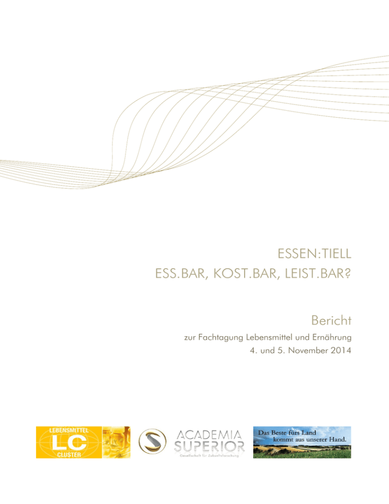 ESSEN:TIELL ESS.BAR, KOST.BAR, LEIST.BAR? Bericht zur Fachtagung Lebensmittel und Ernährung 4. und 5. November 2014 Hintergrund Zahlreiche ESSEN:TIELLE Themenbereiche beschäftigen die gesamte Wertschöpfungskette der Lebensmittelbranche. Was ist ess.bar, kost.bar und auch leist.bar? Lebensmittel sind nicht nur essentiell für das tägliche Leben aller Oberösterreicherinnen und Oberösterreicher, ihre Erzeugung beschäftigt auch eine ganze Wertschöpfungskette innerhalb der heimischen Wirtschaft. Wie viele andere Wirtschaftsbereiche ist die gesamte Lebensmittelbranche von einem Prozess des permanenten Wandels und einer stetig wachsenden Dynamik gekennzeichnet. Ursachen für diesen stetigen Prozess sind etwa die kulinarische Globalisierung, neue Ernährungsmuster und -trends, (bio)technische Innovationen, sowie Änderungen im Lebensmittelrecht oder den Marketingstrategien. Diese gegenwärtigen Entwicklungen werden unsere Ernährungsgewohnheiten in Zukunft stark verändern und stellen die heimischen Lebensmittelproduzenten immer wieder vor die Herausforderung, sich neu am Weltmarkt positionieren zu müssen. Um wichtige Zukunftsfragen im Bereich der kulinarischen Globalisierung, der Lebensmittelkennzeichnung und der medialen Einflüsse mit Fachleuten zu diskutieren und daraus neue Erkenntnisse zu gewinnen, wurde vom 4. - 5. November 2014 die Fachtagung „ESSEN:TIELL“ vom Lebensmittel-Cluster OÖ gemeinsam mit der ACADEMIA SUPERIOR – Gesellschaft für Zukunftsforschung und in Kooperation mit dem Agrar-Ressort und dem Wirtschafts-Ressort des Landes Oberösterreich in der Fachhochschule OÖ, Fakultät für Technik und Umweltwissenschaften in Wels veranstaltet. Ziel der Fachtagung ESSEN:TIELL war es, einen Ein- und Ausblick in die uns alle betreffende Ernährungszukunft zu gewähren, sowie die aktuellen Themenbereiche der Lebensmittelbranche zu präsentieren, zu reflektieren und zu diskutieren. Die Fachtagung bot den Raum und eine Plattform für innovative Ideen in Bezug auf Lebensmittel und Ernährung. Lebensmittelbranche in Wirtschaft und Politik Bedeutung der Lebensmittelbranche für den Wirtschaftsstandort Oberösterreich Die Anzahl der Betriebe im Lebensmittelgewerbe, in der Lebensmittelindustrie und im Lebensmittelhandel beläuft sich in Oberösterreich auf insgesamt 2.993 Unternehmen mit einem Umsatzvolumen von 10,5 Mrd. Euro. Von diesen Betrieben sind 1.007 dem Lebensmittelgewerbe, 89 der Nahrungs- und Genussmittelindustrie und 1.897 dem Lebensmittelhandel zuzuordnen. Ihre Zahl ist allein in den letzten drei Jahren um sieben Prozent gewachsen und diese Unternehmen beschäftigen gemeinsam circa 40.000 Mitarbeiterinnen und Mitarbeiter was bedeutet, dass jeder elfte Oberösterreicher in der Lebensmittelbranche tätig ist. Zusätzlich zu diesen Unternehmen und Beschäftigten sind auch die 31.814 landwirtschaftlichen Betriebe, mit den 80. 730 in ihnen haupt- und nebenberuflich beschäftigten Personen,1 als integraler Bestandteil der oberösterreichischen Lebensmittelbranche zu betrachten. „Die oberösterreichische Lebensmittelbranche zeichnet sich durch eine starke wirtschaftliche Stabilität aus und ist daher als essentiell für den Wirtschaftsstandort zu betrachten.“ Dr. Hermann Pühringer Im Gegensatz zu Gesamtösterreich, werden in Oberösterreich mehr Lebensmittel exportiert als importiert. Im Jahr 2013 standen den 1,9 Mio. Tonnen aus Oberösterreich exportierten Lebensmitteln 1,3 Mio. Tonnen Lebensmittelimporte gegenüber. Wert- und mengenmäßig stammen insgesamt ein Viertel der österreichischen Lebensmittelexporte aus Oberösterreich.2 Außerdem werden 29 Prozent aller Rinder und 36 Prozent aller Schweine Österreichs in Oberösterreich gehalten und 32 Prozent der Milchprodukte in Oberösterreich produziert.3 Viehhaltung in landwirtschaftlichen Betrieben in Oberösterreich 1999-20134 1999 2010 2013 643.921 584.440 572.650 Schweine 1.183.794 1.212.551 1.095.030 Hühner 2.951.520 3.106.127 k. A. Rinder 1 Statistik Austria: Agrarstrukturerhebung 2013. Wien 2014. Statistik WKOÖ, Oberösterreich Exporte 2013, Österreich Exporte/Importe 2013. 3 Statistik Austria, AWI Rinderdatenbank und Allgemeine Viehzählung, Stand: 1.12.2013. 4 Quelle: Amt der OÖ. Landesregierung/ Abteilung Land- und Forstwirtschaft, Grüner Bericht 2014. 33. Bericht über die wirtschaftliche und soziale Lage der oberösterreichischen Land- und Forstwirtschaft in den Jahren 20112013. Linz 2014, S. 118. 2 Lebensmittel als Aktionsfeld im Strategischen Programm „Innovatives Oberösterreich 2020“ Die Bereiche „Lebensmittel und Ernährung“ werden als ein Stärkefeld Oberösterreichs, mit zahlreichen regionalen Spezialisierungen im Unternehmensbereich, betrachtet. Alle einschlägigen Branchen sind in Oberösterreich vertreten und weisen zumeist ein höheres Wachstum als im österreichischen Durchschnitt auf. Um Oberösterreich als eine in Europa führende Region für die Entwicklung, Vermarktung und nachhaltige Erzeugung hochwertiger und auf die unterschiedlichen Bedürfnisse der Menschen abgestimmter Lebensmittel zu etablieren, wurde das Aktionsfeld Lebensmittel und Ernährung auch in das Strategische Wirtschafts- und Forschungsprogramm „Innovatives Oberösterreich 2020 – Forschung. Wirtschaft. Zukunft“ aufgenommen. Hierbei sind Forschung und Innovation zwei Säulen für eine leistungsstarke und wettbewerbsfähige Lebensmittelwirtschaft in Oberösterreich. Dieses Programm fokussiert die wirtschafts-politischen Visionen und Ziele für Oberösterreich und soll dem Standort Oberösterreich und insbesondere auch der Lebensmittelbranche helfen, sich den Herausforderungen des globalen Wettbewerbs zu stellen. Ziel ist es, die Innovationskraft und Wettbewerbsfähigkeit des Wirtschaftsstandortes bis zum Jahr 2020 zu verstärken, um für Wachstum und damit für Arbeitsplätze und Wohlstand zu sorgen. Dazu gehören etwa eine Strategie für den Lebensmittelproduktionsstandort, Cross-Sektorale Innovationen, W