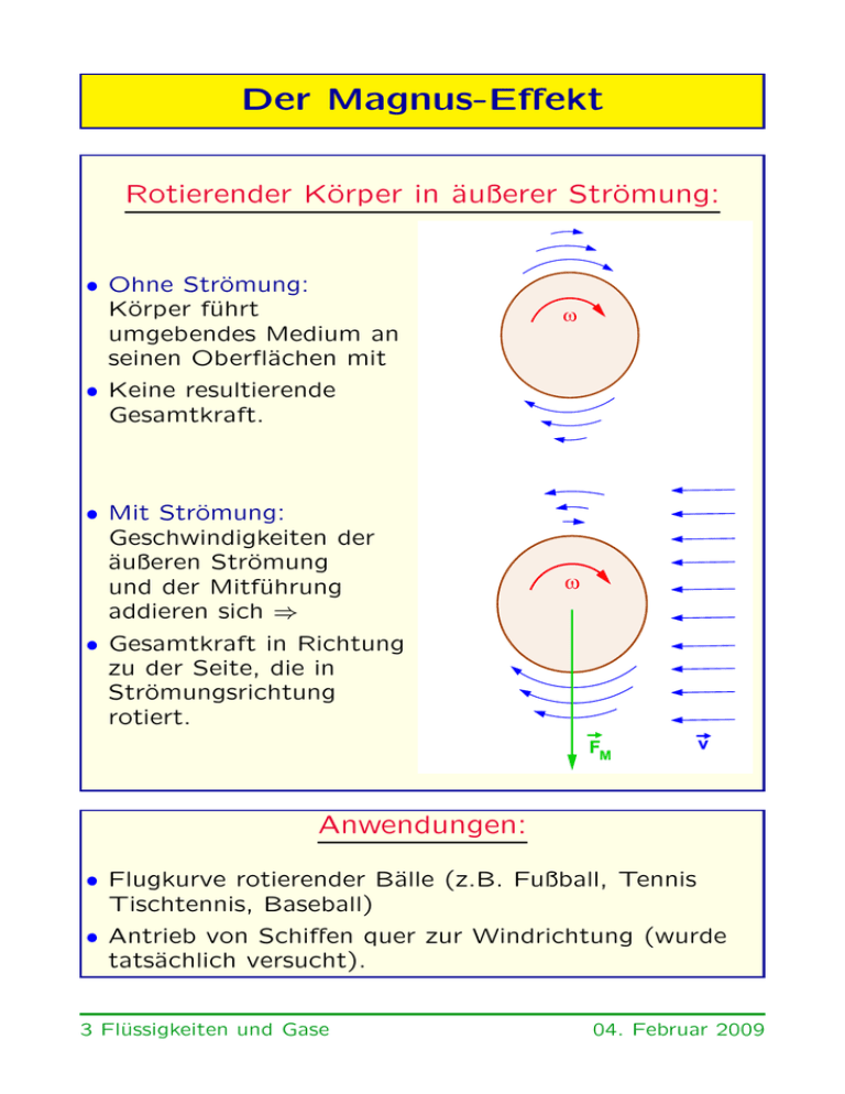 • Flugkurve rotierender Bälle (z.B. Fußball, Tennis