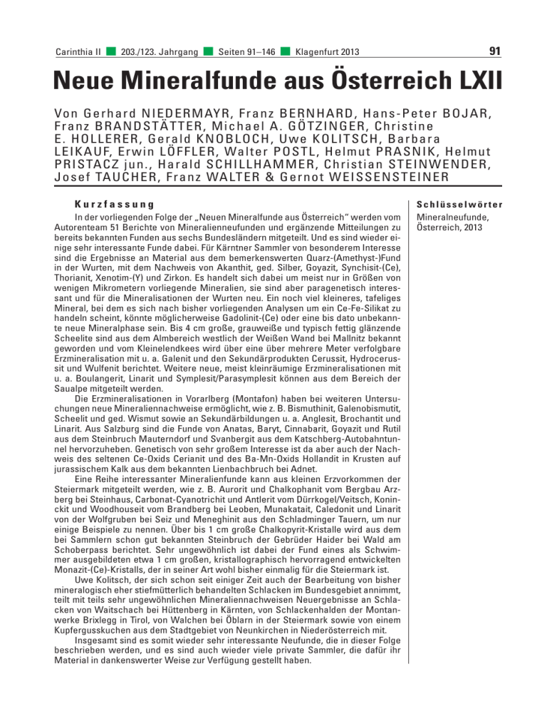 TOMAZIC P., BERNHARD F., KOLITSCH U. & KNOBLOCH G. (2012): Mineralogie eines historischen