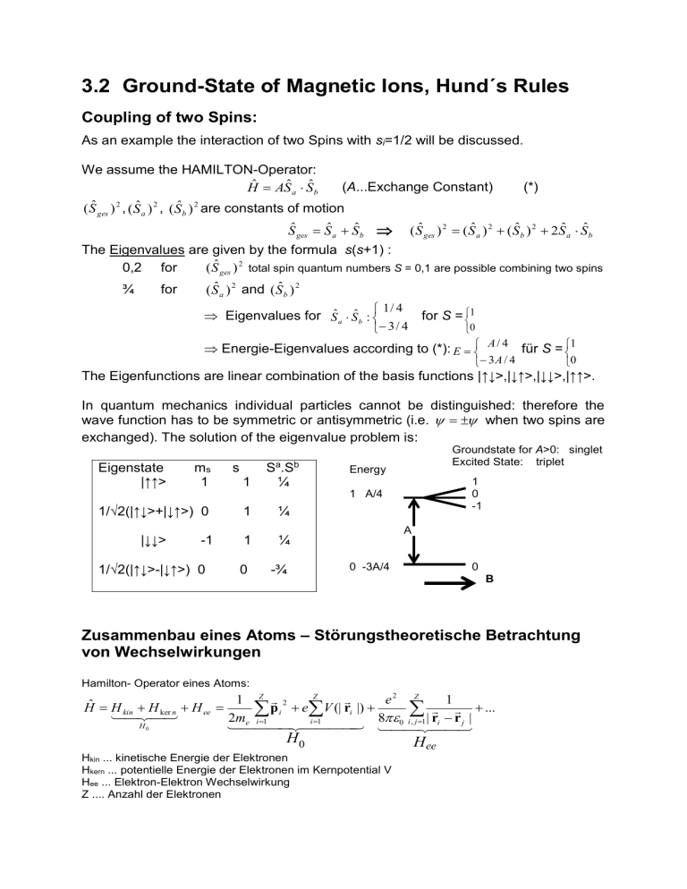 3.2 Ground-State of Magnetic Ions, Hund´s Rules