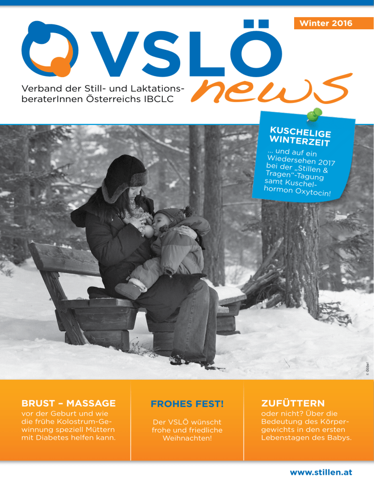 VSLÖ news Winter 2016 Verband der Still- und LaktationsberaterInnen Österreichs IBCLC KUSCHELIG WINTERZE E IT © Göbel … und auf e in Wiedersehe n bei der „Sti 2017 llen & Tragen“-Tag u samt Kusch ng elhormon Ox ytocin! BRUST – MASSAGE vor der Geburt und wie die frühe Kolostrum-Gewinnung speziell Müttern mit Diabetes helfen kann. FROHES FEST! ZUFÜTTERN Der VSLÖ wünscht frohe und friedliche Weihnachten! oder nicht? Über die Bedeutung des Körpergewichts in den ersten Lebenstagen des Babys. www.stillen.at VSLÖ news Liebe Leserinnen und Leser! Herzlich willkommen zu unserer Winterausgabe! Auch wenn die ersten Schneeflocken fallen und der Duft von Keksen und weihnachtlichen Gewürzen in unsere Nasen steigt, lassen wir uns vom Feiern nicht abhalten. Applaus, Applaus … Wir gratulieren ganz herzlich dem Wiener St. Josef-Krankenhaus zur „Baby-friendly Hospital“ BFHI-Zertifizierung und dem Salzkammergut-Klinikum Bad Ischl und dem Tauernklinikum Zell am See zur Re-Zertifizierung! Die Einhaltung des internationalen WHO-Kodex zur Vermarktung von Muttermilchersatzprodukten und die Umsetzung der „10 Schritte zum erfolgreichen Stillen“ sind wichtige Grundpfeiler von BFHI und Basis unserer Arbeit als IBCLC-Still- und LaktationsberaterInnen. DSAin Anita Schoberlechner Was Stillen und Werbung miteinander zu tun haben, darüber referierte Andrea Hemmelmayr, IBCLC bei der internen VSLÖ-Tagung im steirischen Leoben. Weitere Zusammenfassungen der Tagung lesen Sie in dieser Ausgabe. Auch wurde in Leoben der EISL-Flüchtlings-Stillpreis in der Höhe von 1.000 Euro von der Direktorin des Europäischen Instituts für Laktation & Stillen, Gabriele Nindl, an das Gewinnerprojekt „Stillberatung im Haus Favorita“ feierlich überreicht, sowie die Wahl des neuen VSLÖ-Vorstands gefeiert. Zum Abschluss lassen wir Fr. Prof.in Daniela Karall, IBCLC hochleben. Sie ist ab 2017 die neue Präsidentin der Österreichischen Gesellschaft der Kinder- und Jugendheilkunde. Ich wünsche Ihnen eine schöne Weihnachts- und Winterzeit! Auf ein gutes Jahr 2017! Alles Liebe, Anita Schoberlechner, alte und neue Präsidentin des VSLÖ Warum isst du nicht? Erklärungen aus der Säuglingspsychosomatik Unsicherheiten bei der Ernährung eines Babys, ganz besonders beim ersten Kind, kennt jede Mutter. Es dauert, bis man in die neue Aufgabe hineinwächst und der Alltag zur Normalität wird. Aber ab wann wird aus einer Unsicherheit ein Problem, wann wird daraus ein Krankheitsbild? Und wie behandelt man diese Störung? OÄ Dr.in Josephine Schwarz-Gerö von der Abteilung für Säuglingspsychosomatik im Wilhelminenspital in Wien lieferte den TeilnehmerInnen der VSLÖ-Tagung in Leoben aufschlussreiche Antworten darauf. 30-40% aller Eltern haben das subjektive Empfinden, dass sich bei ihrem Kind ein Fütterungsproblem zeigt. Bleibt dieses Problem trotz Hilfesuche über einen längeren Zeitraum bestehen, kann es sich objektiv gesehen zu 2 einer Fütterungsstörung ausweiten. Fütterungsstörungen können, wie auch Gedeih-, Schlaf- und Schreistörungen, auf eine Eltern-Kind-Interaktionsstörung hinweisen. Man spricht dann von einem Präsentiersymptom. Aber was bedeutet Interaktion überhaupt? Interaktion ist die Gesamtheit der verbalen und nonverbalen Signale einer Person zu einer anderen und die daraus entstehende Wechselwirkung. Wenn über einen längeren Zeitraum wiederholt kindliche Signale nicht wahrgenommen oder missinterpretiert werden und/oder gar nicht, inadäquat oder zeitverzögert beantwortet werden, liegt eine Eltern-KindInteraktionsstörung vor. Es handelt sich bei Interaktionsstörungen immer um einen dynamischen Prozess. Eine Ein-Schritt-Lösung ist selten möglich, Diagnostik und Therapie laufen meist gleichzeitig ab. Das wichtigste Werkzeug in der Arbeit mit den betroffenen Familien ist die Videotechnik. Dabei werden die Eltern wissentlich bei routinemäßigen Tätigkeiten mit ihrem Kind wie Füttern, Spielen, Wickeln etc. gefilmt. Die Kamera steht dabei auf einem Stativ, alle im Raum befindlichen Personen befinden sich vor der Kamera, um Ablenkungen zu vermeiden. Durch das mögliche wiederholte Abspielen des Videos werden vorerst unbeachtete Details sichtbar und somit eine optimierte Analyse der Situation möglich. Ein Beispiel: Eine Mutter wird mit ihrem 14 Monate alten Kind an die Säuglingspsychosomatische Abteilung überwiesen und aufgenommen. Eine typische Fütterungssituation VSLÖ news wird gefilmt. Man sieht eine Mutter, die das Kind auf ihrem Schoß zu füttern versucht. Das Kind streckt sich durch, dreht den Kopf weg, schreit und weint, verweigert die Nahrungsaufnahme. Die Mutter hält das Kind fest und versucht, mit dem Löffel das Kind zu erreichen. Schließlich resigniert die Mutter und stillt ihr Kind, dabei ist ihr Blick ins Leere gerichtet. Nach der ätiologischen Einteilung der Eltern-Kind-Interaktionsstörungen nach Irene Chatoor handelt es sich hierbei um eine sog. posttraumatische Fütterungsstörung. Das Kind hat durch den wiederholten Versuch der Zwangsfütterung Angst vor der Esssituation. Therapie ist nun, dem Kind zu ermöglichen, eine autonome Lösung zu finden. Nach der Phase des Zwanges wird ihm jetzt die freie Wahl gelassen. Der Vater verbringt ab sofort den Tag mit dem Kind, sie spielen viel miteinander, das Essen ist kein Thema. Die Mutter verlässt nach dem morgendlichen Stillen die Station und kehrt erst abends wieder zurück, dann wird das Kind von ihr gestillt und sie verbringen gemeinsam die Nacht. Nach einer Woche, während der das Kind medizinisch überwacht wird, da es außer den Stillmahlzeiten keine Nahrung zu sich nimmt, verlangt das Kind in der Stationsküche, in der gehoppediz_anz_vslo_winter_2015_165x85,6 © Fotolia rade gekocht wird, ein Würstchen und isst es. Das Kind hat seine Autonomie wiedererlangt. In dem Kontrollvideo, das 10 Tage nach dem ersten Video aufgenommen wird, zeigt sich eine entspannte Esssituation. Neben der posttraumatischen Fütterungsst