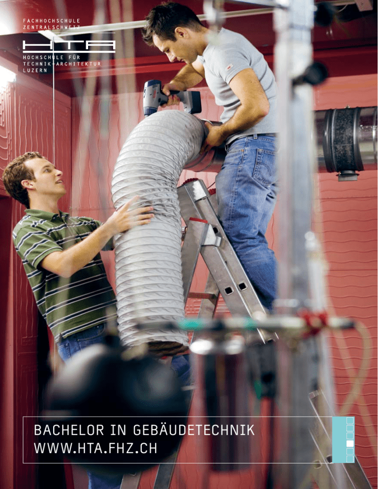 BACHELOR IN GEBÄUDETECHNIK WWW.HTA.FHZ.CH GEBÄUDETECHNIK – EIN VIELSEITIGES STUDIUM MIT PERSPEKTIVEN GEBÄUDETECHNIK: EINE GUTE WAHL Ingenieurinnen und Ingenieure der Gebäudetechnik planen für Gebäude die haustechnischen Systeme wie Heizungs-, Lüftungs-, Klima- und Sanitäranlagen sowie Elektro- und Gebäudeautomationsanlagen und sind zuständig für die Gesamtkonzepte dieser Anlagen. Die Anforderungen an die Haustechnik in modernen Gebäuden nehmen ständig zu. Auf der einen Seite soll sie den hohen Ansprüchen der Nutzer gerecht werden, auf der anderen Seite muss der Energiebedarf von Gebäuden deutlich sinken. Heute benötigen Gebäude rund 50 Prozent des gesamten schweizerischen Energiebedarfs. Dank intelligenter, in Teams erarbeiteter ganzheitlicher Lösungen ist es möglich, Bauten zu erstellen, die nur noch einen Bruchteil der Energie herkömmlicher Systeme verbrauchen. Ingenieurinnen und Ingenieuren der Gebäudetechnik kommt dabei eine Schlüsselrolle zu. Mit dem Bachelor-Studium Gebäudetechnik, das in der Schweiz ausschliesslich an der HTA Luzern angeboten wird, erhalten Sie eine fundierte und praxisnahe Ingenieur-Ausbildung. Sie sind eine gesuchte Fachkraft und mit dem Bachelor of Science FH steht Ihnen später der Weg zu einem weiter führenden Masterstudium im Inund Ausland offen. 2 INTERESSANTE BERUFSFELDER: INGENIEURE UND INGENIEURINNEN DER GEBÄUDETECHNIK SIND GEFRAGT Gebäudetechnikingenieurinnen und -ingenieure arbeiten hauptsächlich in Planungs- und Installationsunternehmen, aber auch bei Komponentenund Systemanbietern, bei Ver- und Entsorgungstechnikfirmen, bei institutionellen Bauherren, Generalplanungsunternehmen oder Behörden. In den ersten Berufsjahren sind Sie vornehmlich in der Planung und Projektierung von Gebäudetechnikanlagen tätig und führen die notwendigen Berechnungen, Dimensionierungen, Ausschreibungen und Baubegleitungen durch. Je nach gewählter Studienrichtung kommen folgende Schwerpunkte in Frage: Heizungs-, Lüftungs- und Klimatechnik Heizungs- und Sanitärtechnik Gebäude-Elektroengineering Die starke Vernetzung mit den Studiengängen Architektur und Bautechnik fördert zudem einen wesentlichen Bestandteil des Gebäudetechnikstudiums: die Interdisziplinarität. Gebäudetechnikingenieure üben anspruchsvolle berufliche Tätigkeiten aus, welche die Anwendung wissenschaftlicher Erkenntnisse und Methoden erfordert. Dabei ist ihr Handeln von Umwelt-, Energie- und Kostenbewusstsein sowie Verantwortungsgefühl gegenüber der Gesellschaft geprägt. Das Gebäudetechnikstudium an der HTA Luzern ist eine hervorragende Basis für eine erfolgreiche Berufstätigkeit mit sehr guten Karrierechancen in der an wirtschaftlicher Bedeutung gewinnenden Gebäudetechnikbranche. HTA LUZERN > BACHELOR IN GEBÄUDETECHNIK 2007/2008 STUDIENGANGKONZEPT STUDIENZIELE UND KOMPETENZEN: NACH DEM STUDIUM SIND SIE FIT STUDIENINHALT: EIN STUDIUM MIT KONZEPT Die Ausbildung zum Gebäudetechnikingenieur ist auf Abschlusskompetenzen ausgerichtet, die gemeinsam mit der Industrie und der Branche erarbeitet wurden. Das Studium vermittelt Ihnen fachliche, methodische und soziale Kompetenzen. Der Studiengang Gebäudetechnik umfasst die drei Studienrichtungen Heizung-Lüftung-Klima (HLK), Heizung-Sanitär (HS) und Gebäude-Elektroengineering (EE). Im Zentrum der Ausbildung stehen die Projektmodule; innerhalb dieser werden die Kompetenzen aller übrigen Module vernetzt und angewendet. Leitgedanke der Ausbildung ist für alle drei Studienrichtungen nebst der Projektfokussierung eine integrale, ganzheitliche Denkweise. Gebäudetechnikingenieurinnen und -ingenieure sind nach Abschluss des Studiums in der Lage: Gebäudetechnikanlagen bzw. Teilprobleme von komplexen Gebäudetechnikanlagen zu planen und zu projektieren. Energie- und Gebäudetechnikkonzepte zu erarbeiten und massgebend an der energetischen, ökologischen und ökonomischen Optimierung von Gebäudetechnikkonzepten und Gebäudetechnikanlagen mitzuwirken. Bauherren bezüglich Gebäudetechnik und rationellem sowie umweltschonendem Energieeinsatz zu beraten und mit Behörden, Planern, Architekten und Installations- und Dienstleistungsfirmen zu verhandeln. Die Planungen von den ersten Konzepten bis zur Inbetriebnahme und zum Unterhalt der Anlagen durchzuführen. Projekte unter technischen, ökonomischen und ökologischen Aspekten systematisch zu planen, verantwortungsbewusst zu leiten bzw. in einem Projektteam mitzuarbeiten, Projektergebnisse klar zu dokumentieren und adressatengerecht in einem interdisziplinären Umfeld sicher zu kommunizieren und zu präsentieren. Sich selbstständig Wissen in einem neuen Bereich anzueignen und entsprechend umzusetzen. Für die Studienrichtung Gebäude-Elektroengineering muss der Entscheid gleich zu Beginn des Studiums fallen. Bei den anderen beiden Studienrichtungen Heizung-Lüftung-Klima oder HeizungSanitär können Sie sich bis zum Ende des ersten Studienjahres Zeit lassen. Die Differenzierung der Studienrichtungen erfolgt ausschliesslich in einem Teil der Kernmodule. Für die Studienrichtungen HLK und HS sind dieselben Kernmodule wählbar. Die Differenzierung erfolgt hier über verschiedene Kurse innerhalb der Module (Sanitärtechnik oder Lüftungs- und Klimatechnik). Nebst der Wahl der Studienrichtung haben Sie die Möglichkeit, weitere Schwerpunkte zu wählen. Das Studium ist in drei Phasen geteilt – im Vollzeitstudium dauert jede dieser Phasen ein Jahr. Im ersten Teil steht die Vermittlung der naturwissenschaftlichen Basiskenntnisse sowie eine Sensibilisierung für die fächerübergreifende Zusammenarbeit im Vordergrund. Der Schwerpunkt der zweiten Phase liegt in der fachlichen Vertiefung in der gewählten Studienrichtung. Die dritte Phase ermöglicht Ihnen eine Individualisierung des Studiums aufgrund Ihrer persönlichen Interessen. HTA LUZERN > WWW.HTA.FHZ.CH 3 STUDIENGANGKONZEPT ZULASSUNG: WELCHE VORAUSSETZUNGEN ERFÜLLT SEIN MÜSSEN Nebst der erfolgreich bestandenen Berufsmatura ist 