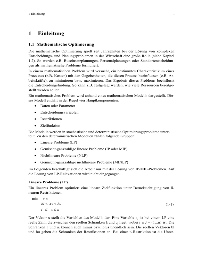 1.2). So werden z.B. Buseinsatzplanungen, Personalplanungen oder Standortentscheidungen als mathematische Probleme formuliert.