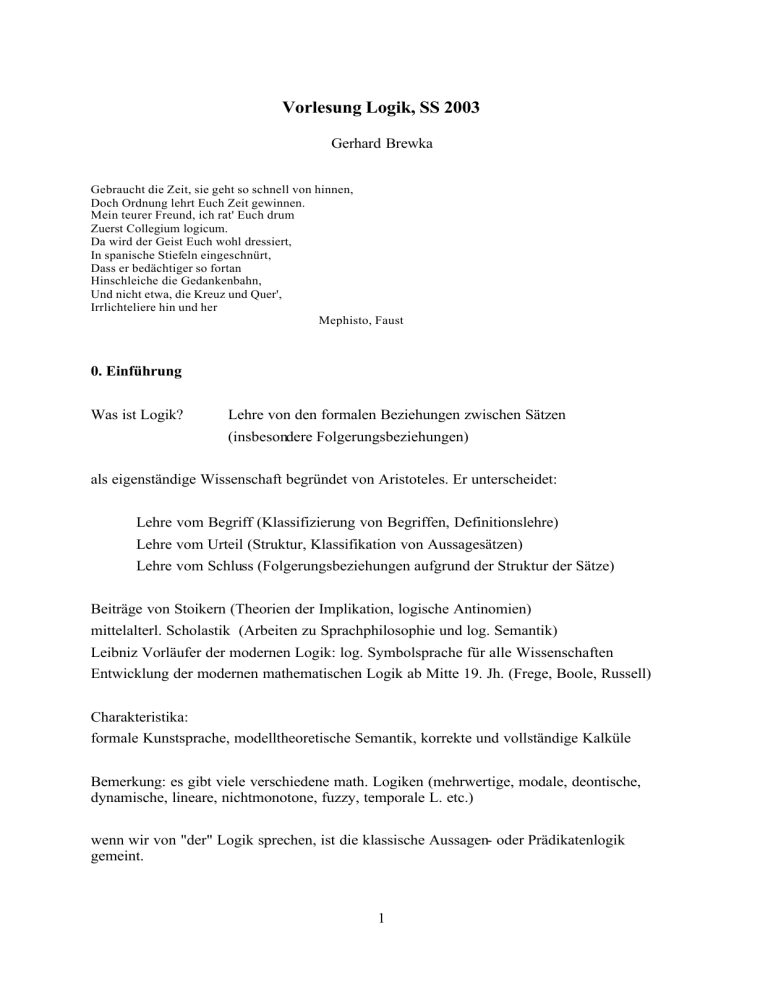 als eigenständige Wissenschaft begründet von Aristoteles. Er unterscheidet: