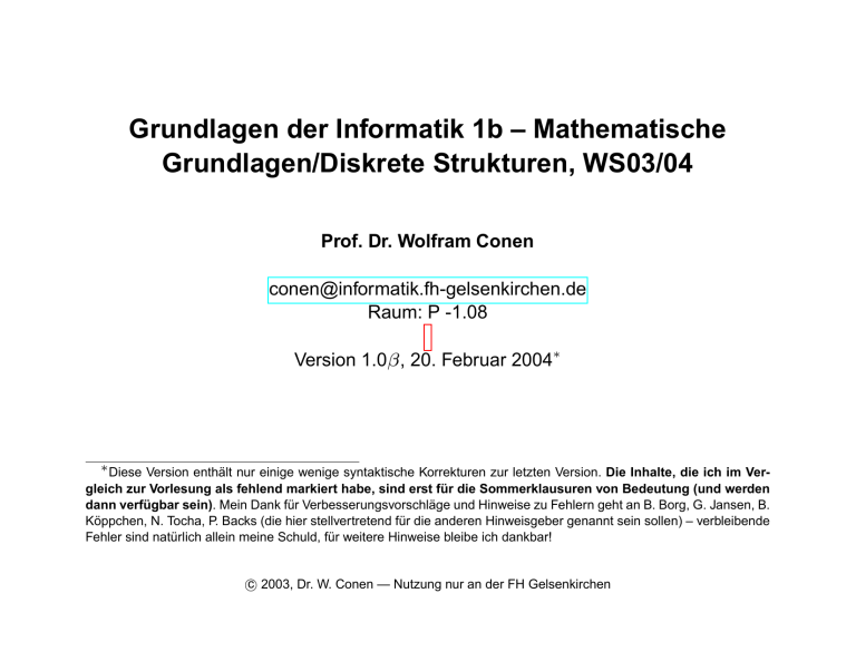 c 2003, Dr. W. Conen — Nutzung nur an der FH Gelsenkirchen