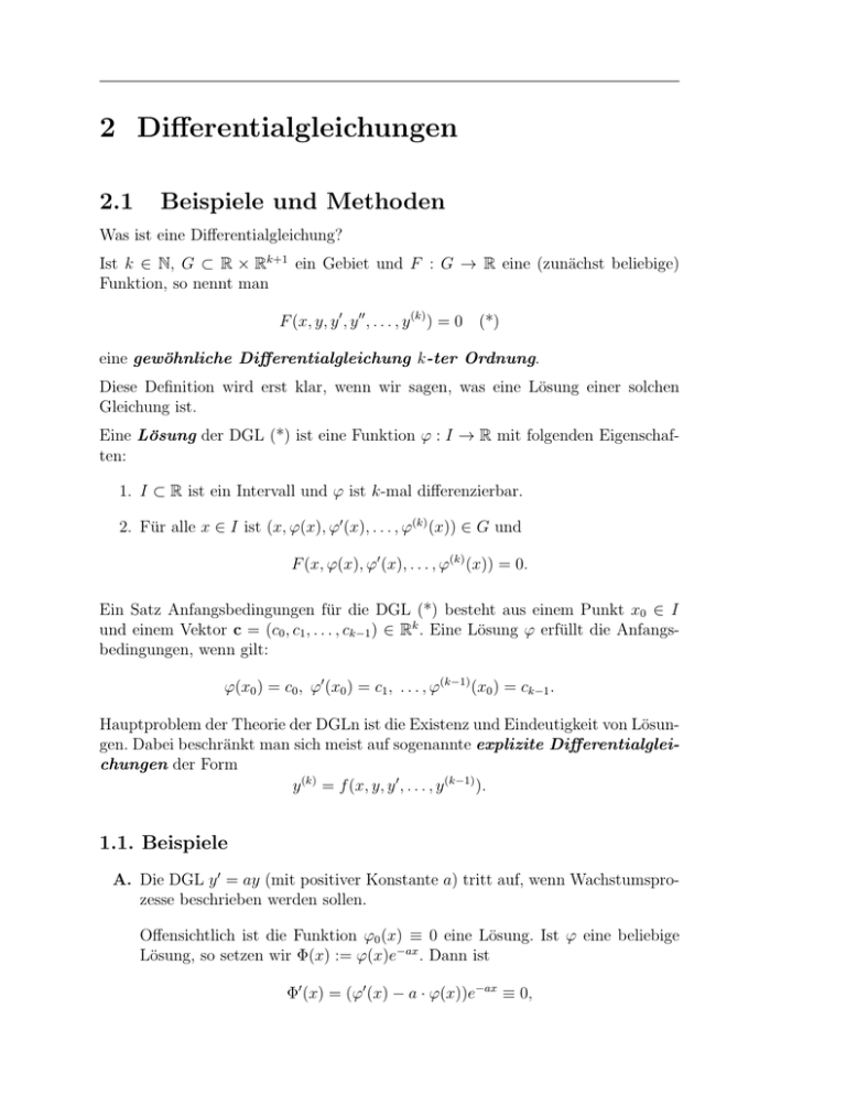 2. Für alle x ∈ I ist (x, ϕ(x), ϕ0 (x), . . . , ϕ(k) (x)) ∈ G und