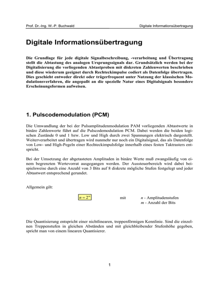 binäre Zahlenwerte führt auf die Pulscodemodulation PCM. Dabei werden die beiden logischen Zustände 0 und 1 bzw. Low und High durch zwei Spannungen elektrisch dargestellt.
