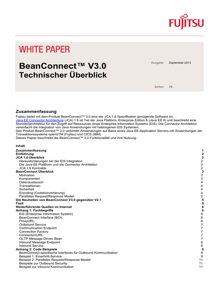 White Paper Ausgabe: September 2013 BeanConnect V3.0