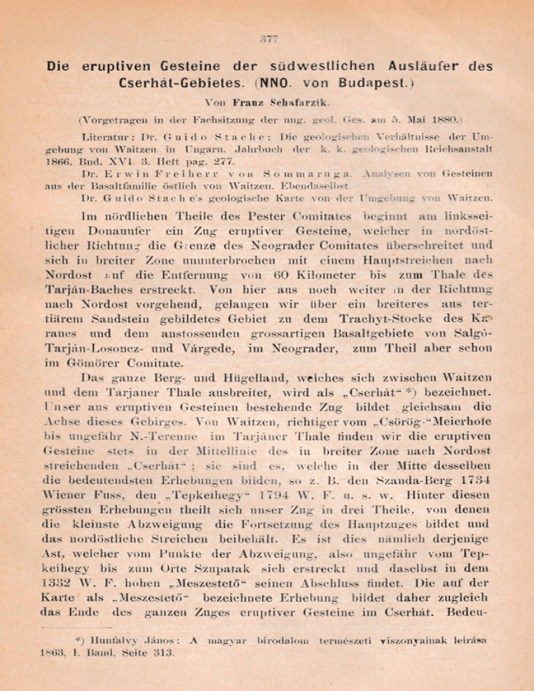 (Vorgetragen in der Fachsitzung der ung. geo!. Des. am 5. Mai 1880.