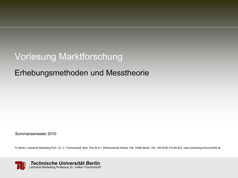 TU Berlin, Lehrstuhl Marketing Prof. Dr. V. Trommsdorff, Sekr. WIL-B-3-1, Wilmersdorfer Straße 148, 10585 Berlin, Tel: +49.(0)30.314-29.922, www.marketing-trommsdorff.de